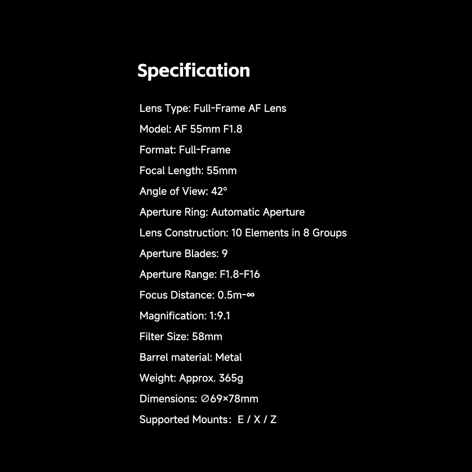 AF 55mm f1.8 Full Frame Lens