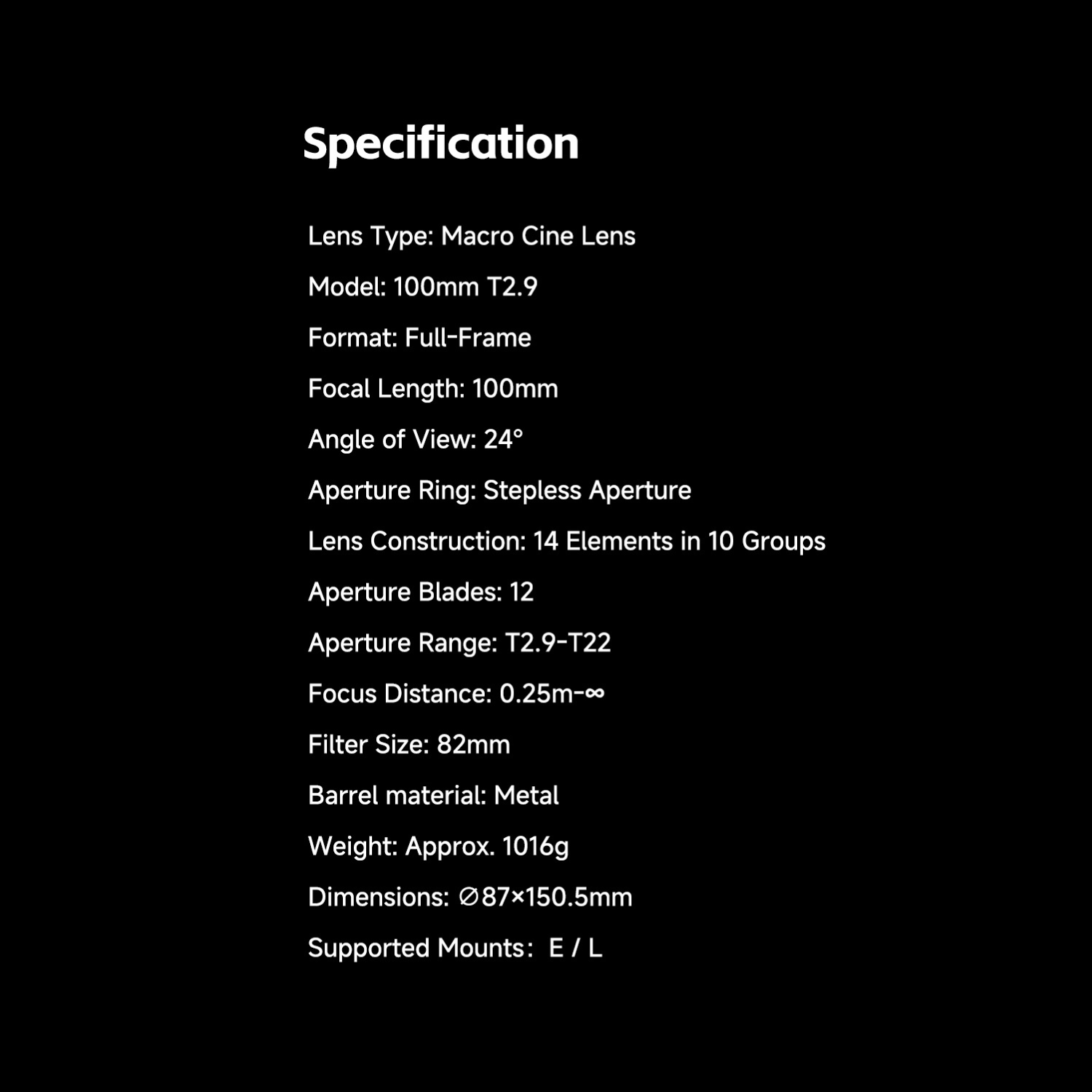 CINE 100mm 2X Macro Full Frame Lens