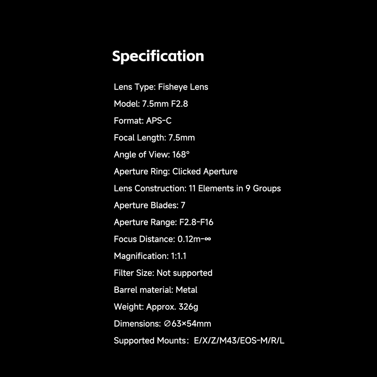 Despite being a niche lens type, this MF 7.5mm fisheye lenses is solid, with all-metal construction.It features a compact and lightweight design, making it a great companion for mirrorless APS-C cameras.